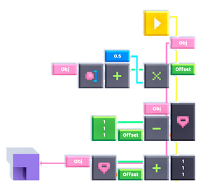 In the section after, the object's new position is then queried, and added to the offset to produce the geometric position of the object.